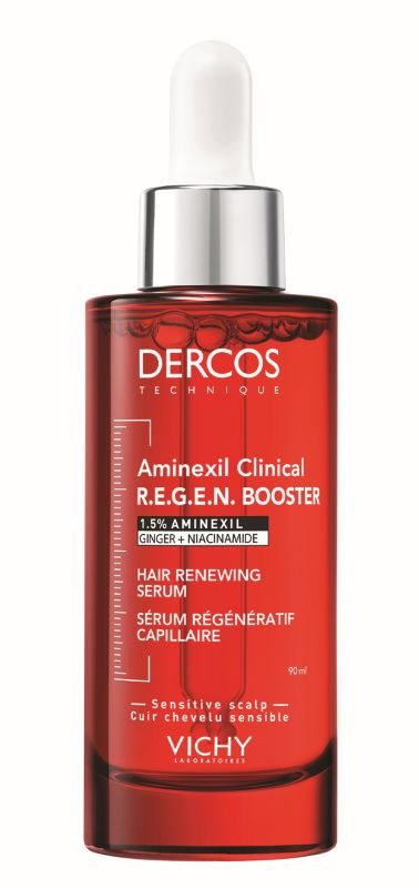 Vichy dévoile une nouvelle innovation, dans sa gamme Dercos, pour lutter contre le problème de la chute des cheveux : le sérum régénératif capillaire Aminexil Clinical R.E.G.E.N Booster, qui réduit la chute des cheveux et stimule le processus de croissance. Combinaison puissante d’Aminexil, renforçant le collagène autour des follicules pileux, et d’un duo «niacinamide-racine de gingembre», qui stimule les cellules souches, ce sérum aide à activer la régénération des cheveux à la fois à l’extérieur et à l’intérieur du follicule pileux. Formule légère et non grasse à effet rafraîchissant, ce sérum peut être utilisé sur cheveux mouillés ou secs. Son application est rapide et facile grâce à son flacon avec applicateur-stilligoutte.
