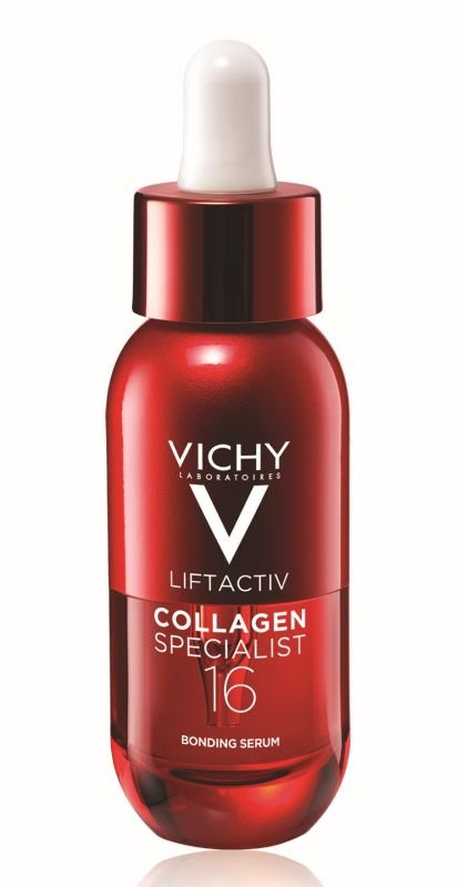 Aussi, pour lutter efficacement contre les signes visibles du vieillissement cutané, Vichy a développé la gamme de crèmes «Liftactiv Collagen Specialist 16» et vient de l’enrichir d’un sérum : le Collagen Specialist 16 Bonding Serum. Il intègre la technologie «co-bonding» permettant de corriger seize signes du vieillissement cutané. Pour stimuler la production de collagène, trois ingrédients actifs forment ensemble une technologie de «co-bonding», qui renforce et relie toutes les familles de collagène. Le rhamnose stimule la production de collagène, les peptides renforcent la fermeté et l’élasticité de la peau, tandis que le maïtaké hydrate et protège la peau contre le vieillissement prématuré. La texture du Collagen Specialist 16 Bonding Serum est claire et transparente, rapidement absorbée par la peau. Conçu pour tous les types de peau, ce sérum contribue à corriger 16 signes de l'âge. Disponible en pharmacie.