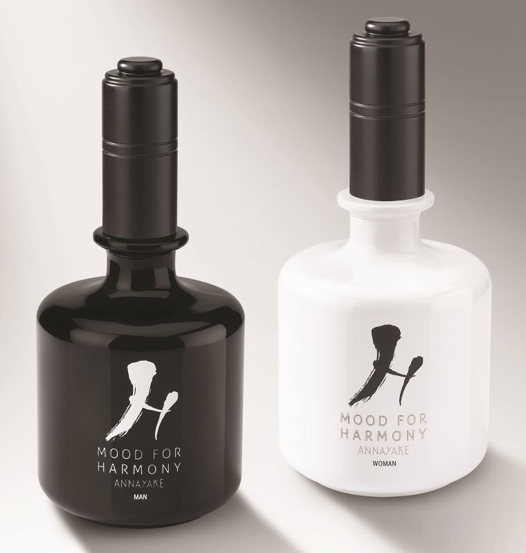 Ode à la sensibilité et à la poésie, la calligraphie est une pratique spirituelle, nourrie de la philosophie zen, et en particulier le Shodō japonais dit «la voie de l’écriture». Annayake s'en est inspiré pour la création de son nouveau duo de parfums : Mood For Harmony. Pour lui, un oriental boisé ambré exprimant l’équilibre entre les forces de l’esprit et du corps, avec en notes de tête de l’iris boisé, des touches vertes de feuilles de pommier et des baies de genièvre. En son cœur, un mélange de cuir, d’encens et d’ambre. En sillage de fond, s’associent musc, santal et vanille. Pour elle, une fragrance aux facettes à la fois florales, poudrées et orientales. Elle éclot sur des notes de feuilles de violette, de baies roses et d’iris. Ensuite, le chèvrefeuille y développe une sensation florale végétale et miellée, sublimée par l’héliotrope. Musc, ambre et vanille s’unissent pour composer le sillage final. Disponible chez April.