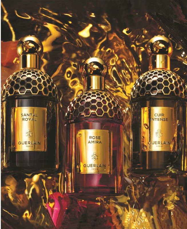 Depuis 2022, la collection «Aqua Allegoria» de Guerlain s’est enrichie des «Aqua Allegoria Forte» : des eaux de parfum aux sillages plus intenses, soutenus par des notes boisées. Cette année, un troisième chapitre s’ouvre avec la collection les Absolus Allegoria : des eaux de parfum absolues encore plus puissantes, sensuelles et opulentes, composées jusqu’à 90% d’ingrédients d’origine naturelle. Santal Royal, Oud Essentiel, Épices Exquises, Patchouli Ardent et Cuir Intense ont ainsi été retravaillées en Eaux de Parfums Absolues au caractère ambré sensuel. Elles sont rejointes par Rose Amira : une création inédite pour les Absolus Allegoria qui revisite le thème éternel de la rose dans une composition racée, entre puissance et douceur. Où s’associent les nuances végétales de l’essence aux accents plus ronds de l’absolue et d’une eau de rose issue de la distillation des pétales. Cette eau de rose donne un supplément d’âme à la fleur qui dévoile au cœur de Rose Amira tout le spectre de son parfum délicat, à la fois citronné, fruité, épicé et miellé. Suivi d’un sillage final fait d’un duo de muscs, de patchouli, d’helvétolide et d’encens. Disponibles dans les boutiques Guerlain.