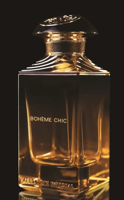Maison de parfumerie marocaine fondée en 2020 et alliant un savoir-faire ancestral à une fusion de styles et de cultures, Marrakech Impérial présente dans sa collection Moroccan Vibes sept chefs-d'œuvre olfactifs, aux accords inspirés de l'univers de la ville de Marrakech. Elaborés à base de matières premières rares provenant des paysages riches du Maroc – bois, plantes, fleurs et essences aromatiques –, ces Extraits de Parfum sont mixtes : Arabian Leather, un oriental cuiré épicé ; Les Nuits de Marrakech, un oriental boisé musqué ; Magie Rouge, un oriental épicé musqué ; Oud Kasbah Royal, un boisé oriental ; Atlas Wood, un boisé floral hespéridé ; Take Me Back To Marrakech, un hespéridé floral chypré ; ou encore Bohème Chic (photo). Ce dernier est un somptueux parfum floriental poudré ambré, s’ouvrant sur un accord floral poudré, suave et balsamique d’iris, d'héliotrope et de poudre de riz, soutenu par des notes musquées, d'ambre et de vanille crémeuse. Les sept parfums sont présentés dans un flacon carré, baigné d’une lumière magique entre obscurité ambrée et or, ainsi que décoré de rosettes et de motifs arabo-orientaux.