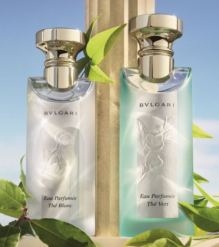 Nouvelle interprétation des deux fragrances iconiques de Bvlgari : l’Eau Parfumée au Thé Vert et l’Eau Parfumée au Thé Blanc, qui sont maintenant réintroduites en version Eau de Toilette. La formule originale de l'Eau Parfumée au Thé Vert a été revisitée en Eau de Toilette, composée à 94 % d'ingrédients d'origine naturelle et intégrant de l'extrait de thé vert indien. La nouvelle composition associe cet ingrédient à un accord floral lumineux de pétales de néroli ; alors que la bergamote se mêle aux jeunes feuilles de thé vert croquantes pour créer une fragrance fraîche et vivifiante. Quant à la nouvelle Eau Parfumée au Thé Blanc, elle est composée à 89 % d'ingrédients d'origine naturelle et inclut un nouvel extrait de thé blanc de Chine, dont les notes fraîches et florales des pétales de fleurs blanches ainsi que ses facettes fruitées et douces se marient avec un accord de musc