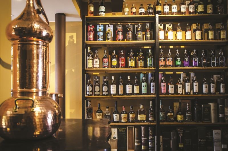 Le col de cygne est la pièce coudée qui surmonte l’alambic pour capter les vapeurs d’alcool et les renvoyer vers le condenseur. C’est ce nom qu’ont choisi Olivier et Armand Couturier comme enseigne pour leur entreprise familiale. Le père d’Olivier et grand-père d’Armand collectionnait les miniatures de whisky pour, un jour, les transmettre à son fils Olivier. Ce dernier les a goûtés et a fait ainsi ses premières découvertes dans le monde du whisky. Autodidacte, ce passionné partage aujourd’hui son savoir avec son fils Armand au Col de Cygne, situé à la chaussée de Waterloo à Uccle. Outre les distilleries notables comme Springbank, Macallan, Laphroaig, Glendronach ou encore Glenfiddich, le Col de Cygne propose des whisky que les connaisseurs recherchent assidûment. Plus de 450 références sont présentées et une belle collection privée d’une centaine de bouteilles est visible à l’étage. A la fois boutique et salon de dégustation, le Col de Cygne peut être réservé pour y organiser tout événement – privé ou professionnel –, soirée ou célébration. De plus, au sein de l’établissement Col de Cygne et ouvert à toute personne de plus de 18 ans souhaitant partager des moments de découverte autour du whisky, l’Albert Henman’s Whisky Club organise une dégustation mensuelle de 5 bouteilles sur une thématique précise. Et des projets spécifiques sont proposés aux membres tout au long de l’année.