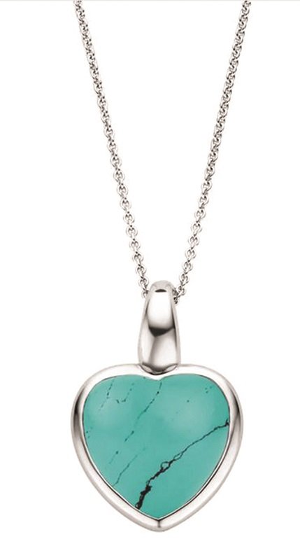 Argent plaqué platine pour ce pendentif Ti Sento – Milano : chaîne en argent fin et pierre bleue turquoise double face en forme de cœur. La pierre est taillée en cabochon et offre un sertissage en argent sterling 925.