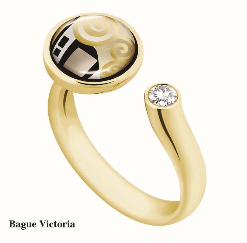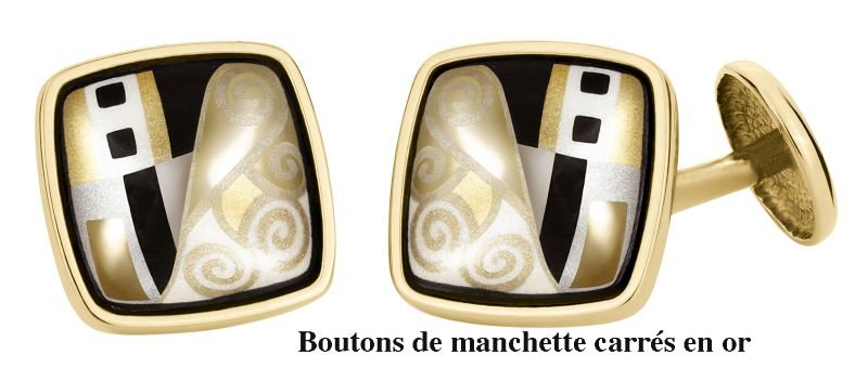 Peintre symboliste autrichien, l'un des plus grands maîtres de l’Art Nouveau et aussi l’un des membres de la Sécession de Vienne, Gustav Klimt (1862-1918), a peint le célèbre tableau «Le Baiser» : une peinture à l’huile sur toile recouverte de feuilles d’or, réalisée de 1907 à 1908, et conservée au Palais du Belvédère à Vienne. Il représente deux amants qui s'abandonnent à une tendre étreinte. Un baiser, un contact, une réflexion sur l'amour qui se détachent du fond grâce à l’éclat de l’or. Une étreinte, de l’or et des motifs considérés comme sources d’inspiration par les artistes Freywille pour la création de The Golden Kiss, une collection de bijoux en émail réfractaire. Dans cette collection 18 carats, rendant hommage à Gustav Klimt, Freywille présente un jeu géométrique de rectangles, de cercles et de spirales surtout concentrée sur l’or et le platine. Les pièces en émail, encastrées dans l’or 18 carats, sont composées de poudre d’or 24 carats ainsi que d’or et platine brillants.