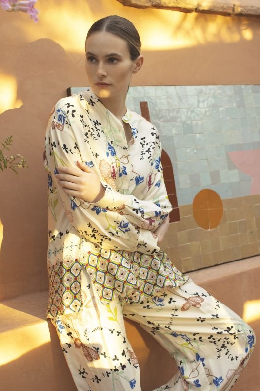 Invitation donc à un voyage sur la Riviera avec la collection estivale 2025 ! Elégance féminine, lignes épurées, touches de couleur et glamour subtilement maîtrisé marquent les silhouettes. Tailleurs sophistiqués, ensembles pyjama en satin fluide à imprimés délicats, pastels ou éclats de rouge éclatant, ainsi que chemises blanches classiques se mêlant à des mailles en lurex et des détails dorés, insufflent une certaine aura de luxe.