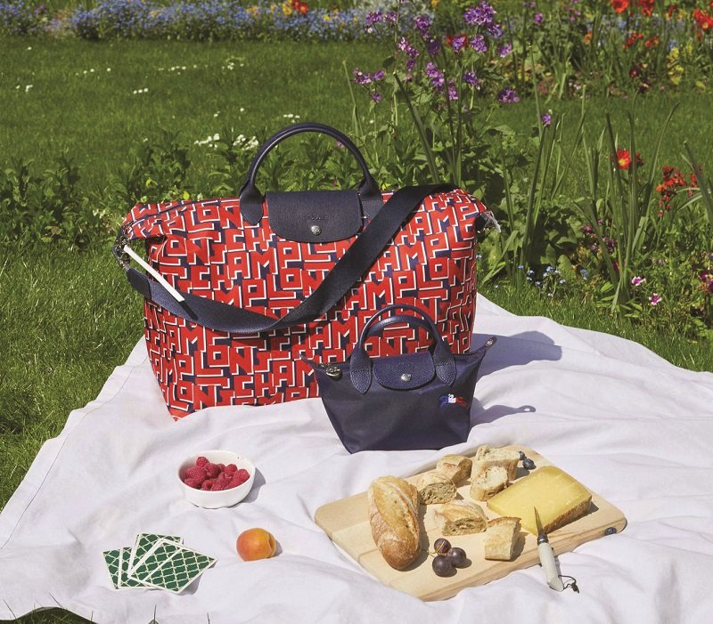 La seconde version joue pleinement la carte du bleu-blanc-rouge grâce à un imprimé intégral mettant en scène le monogramme LGP. La joyeuse association de lettres formant le mot Longchamp est rehaussée de détails en cuir bleu marine. Les deux éditions sont déclinées dans une sélection de formats «Le Pliage» classiques, association ultime entre patriotisme et fonctionnalité.