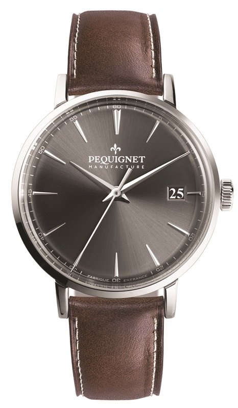C'est en 1973 à Morteau, en Franche-Comté – berceau historique de l'Horlogerie – qu'a été créée la manufacture horlogère française Pequignet. Aujourd'hui, elle dévoile sa nouvelle gamme Attitude Acier. Développée et assemblée entièrement à la Manufacture, elle se décline au choix avec un cadran argent, gris ou blanc soleillé. Son diamètre contenu de 39 mm lui confère une apparence élégante. La Pequignet Attitude Acier est animée par le Calibre Initial, dernier mouvement Manufacture conçu par Pequignet. Il dispose d'un système breveté de saut de date instantané et de remontage. Avec sa réserve de marche de 65 heures, son fond vissé ouvert sur le mouvement avec glace saphir et ses aiguilles frappées arrondies en acier bleui, elle répond aux attentes des personnes recherchant une montre moderne aux lignes intemporelles dans une gamme de prix concurrentiels (à partir de 2500 €).