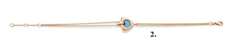 Photos : 1. Bracelet en opposition diamants 1,14 ct issu de la Collection Confidence by Tollet / 2. Bracelet or rose avec turquoise, dans la Collection Symbol by Tollet.
